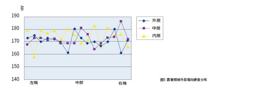 原料焊接圓管外部的硬度分布如下: