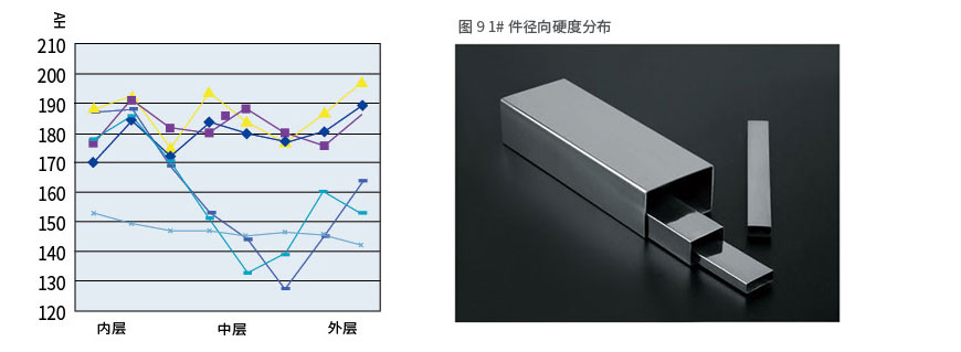 結論:根據以上的結果歸納如下主要變形規律:角部的硬度普遍高于平直部,且試件內層硬度最高,外層次之,中心層的硬度最低。但對于異型管有時中心層硬度并不比外層低,這是因為變形量大,金屬流動不均勻的緣故。
